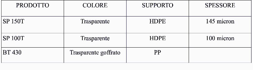 Il tipo SP 150T ha un supporto di spessore maggiore e questo garantisce un'accuratezza maggiore quando il soggetto da trasferire è di dimensioni importanti. Mentre, il BT 430 è il più conformabile di tutti grazie al supporto in polipropilene ed è indicato anche per il trasferimento di stampe non protette.